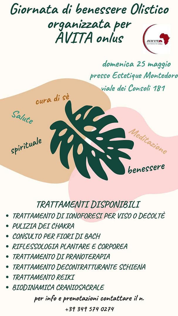 Unisciti a noi per un’esperienza indimenticabile! AVITA Onlus propone una Giornata di benessere Olistico, un evento benefico unico nel suo genere.